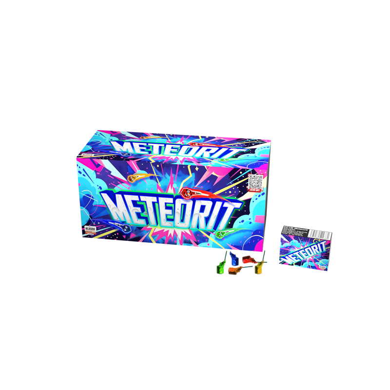 Meteorit prináša dynamický červený rotujúci efekt doplnený intenzívnym praskaním. Po zapálení sa roztočí pri zemi a vytvorí krátku, energickú svetelnú show. Ideálny doplnok k oslavám aj menším ohňostrojovým zostavám. V balení je 8 kusov.