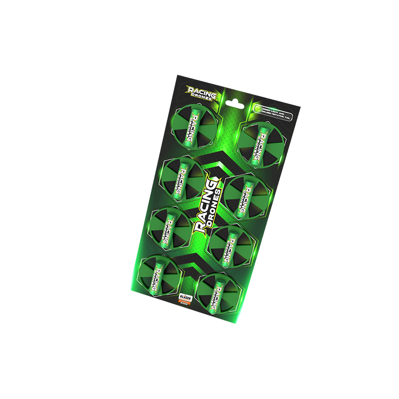 Racing Drones ponúkajú zábavný efekt, pri ktorom sa po jednom zapálení odpáli osem malých „dronov“. Každý z nich vytvára intenzívne zelené svetlo so zlatým rotujúcim chvostom, takže výsledok pôsobí ako rýchly lietajúci roj. Ideálne na oživenie akcií, osláv a silvestrovských momentov. V balení je 8 kusov, všetko pripravené na jeden zážitkový štart.